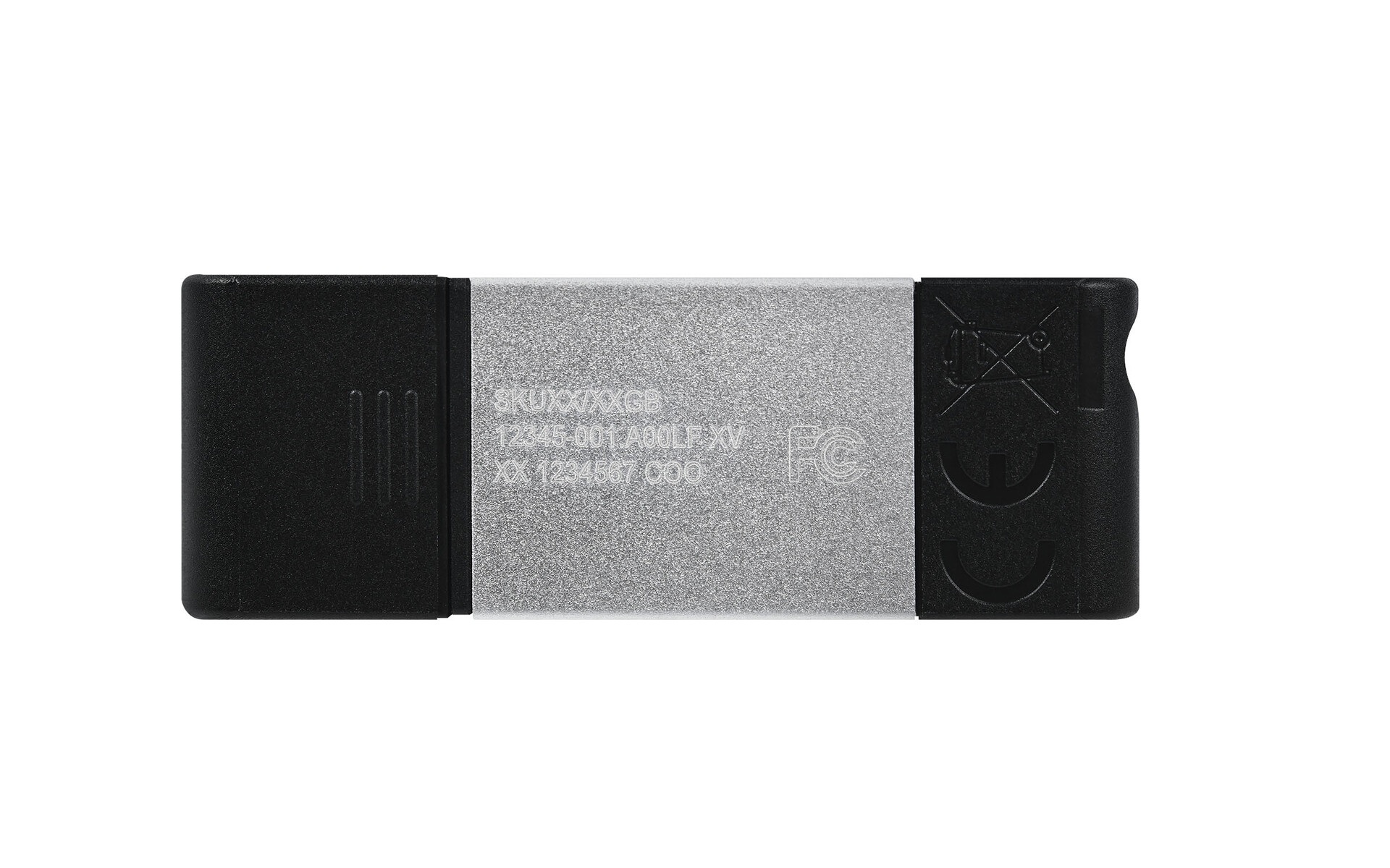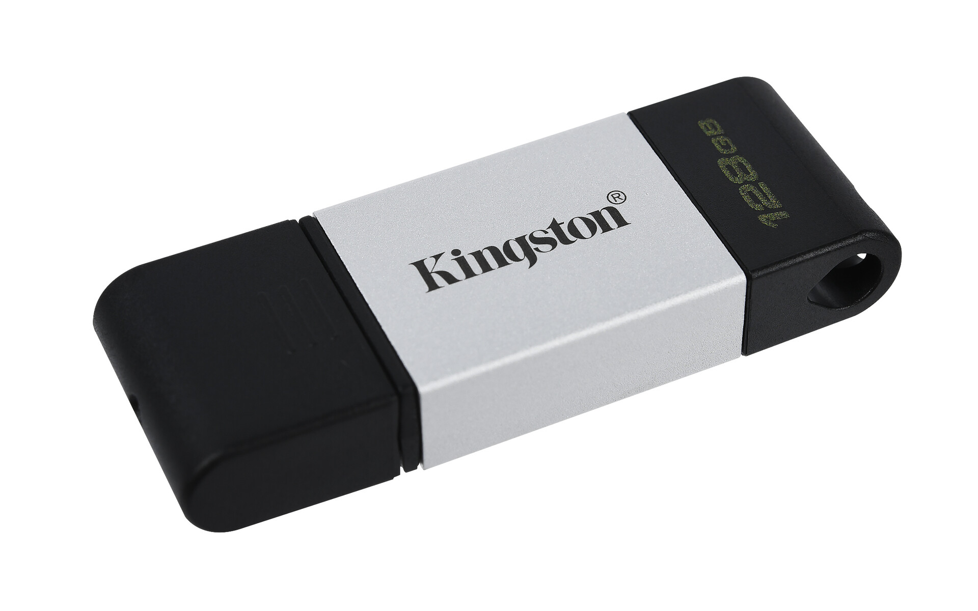 Kingston Technology DataTraveler 80. Capacidade: 128 GB, Interface de dispositivo: USB Type-C, Versão USB: 3.2 Gen 1 (3.1 Gen 1), Velocidade de leitura: 200 MB/s, Velocidade de escrita: 60 MB/s. Fator forma: Tampa. Peso do produto: 4,134 g. Cor do produto: Preto, Prateado
