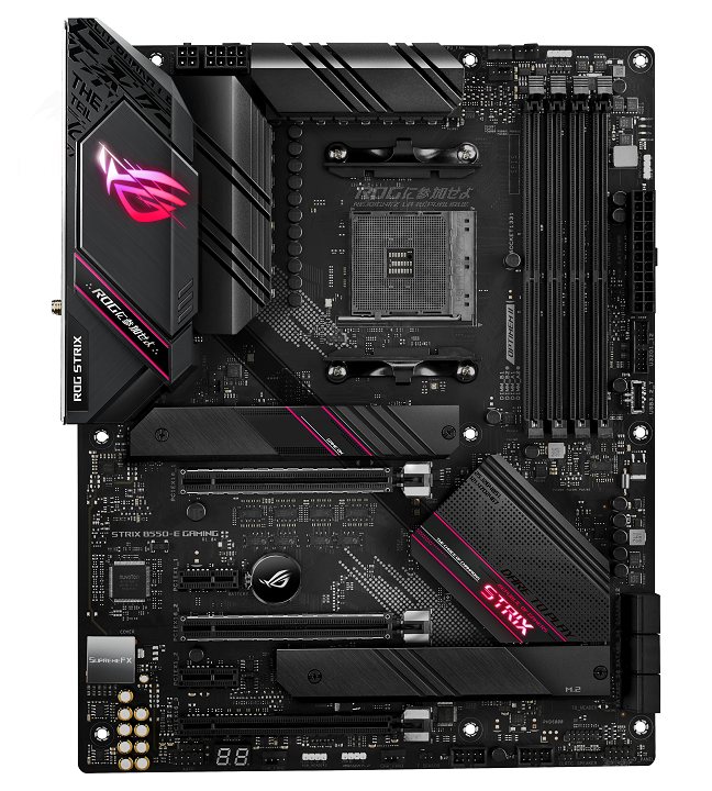 ASUS ROG STRIX B550-E GAMING. Fabricante do processador: AMD, Socket de processador: AM4, Processador: AMD Ryzen. Tipos de memórias suportadas: DDR4-SDRAM, Tipo de memória slots: DIMM, Memória máxima: 128 GB. Interfaces suportadas de armazenamento: ATA serial III.