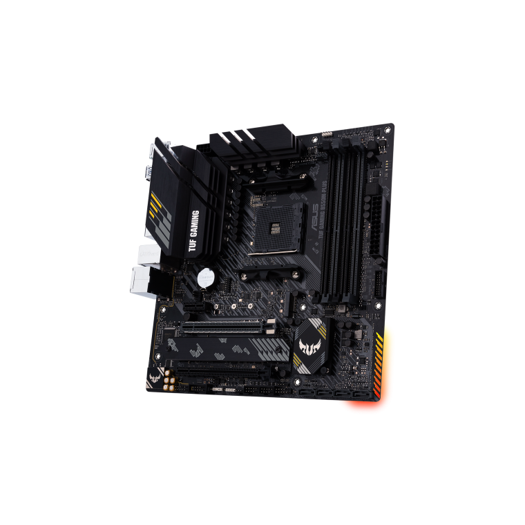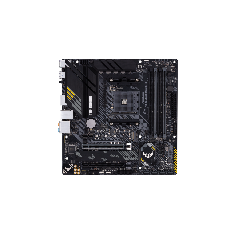 ASUS TUF GAMING B550M-PLUS. Fabricante do processador: AMD, Socket de processador: AM4, Processador: AMD Ryzen. Tipos de memórias suportadas: DDR4-SDRAM, Tipo de memória slots: DIMM, Memória máxima: 128 GB. Interfaces suportadas de armazenamento: ATA serial III.