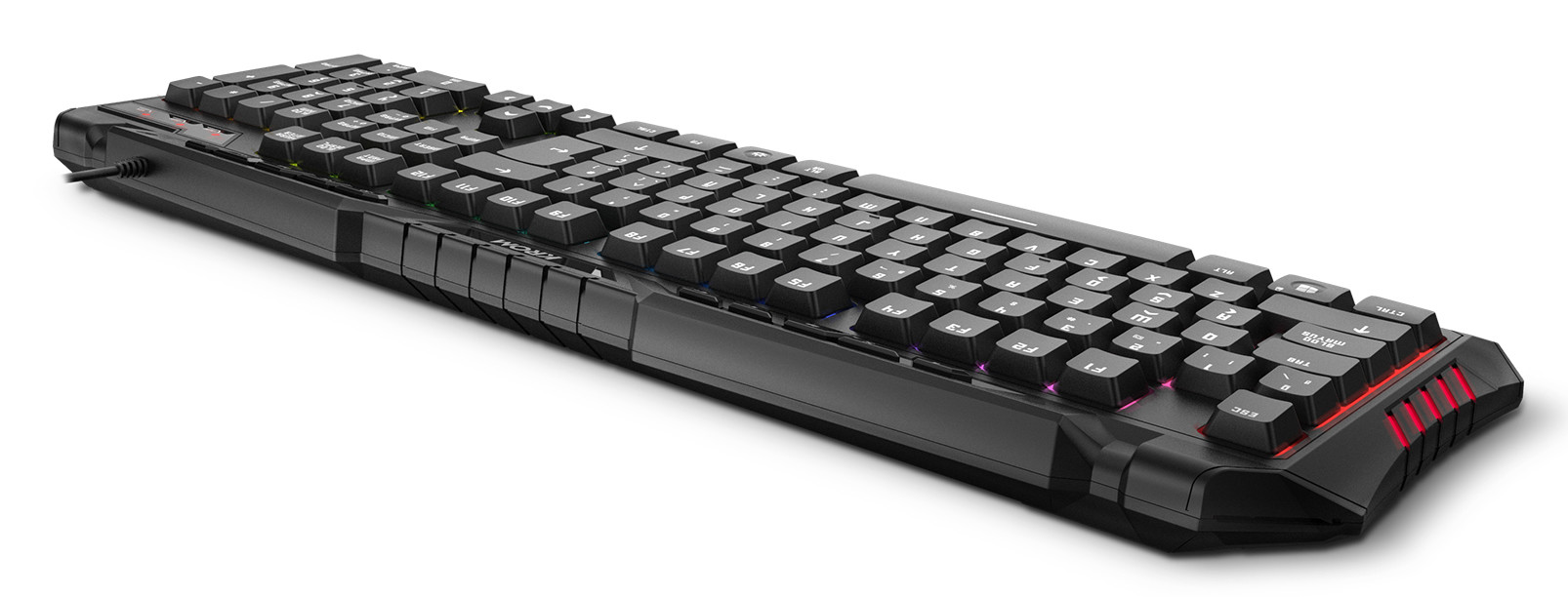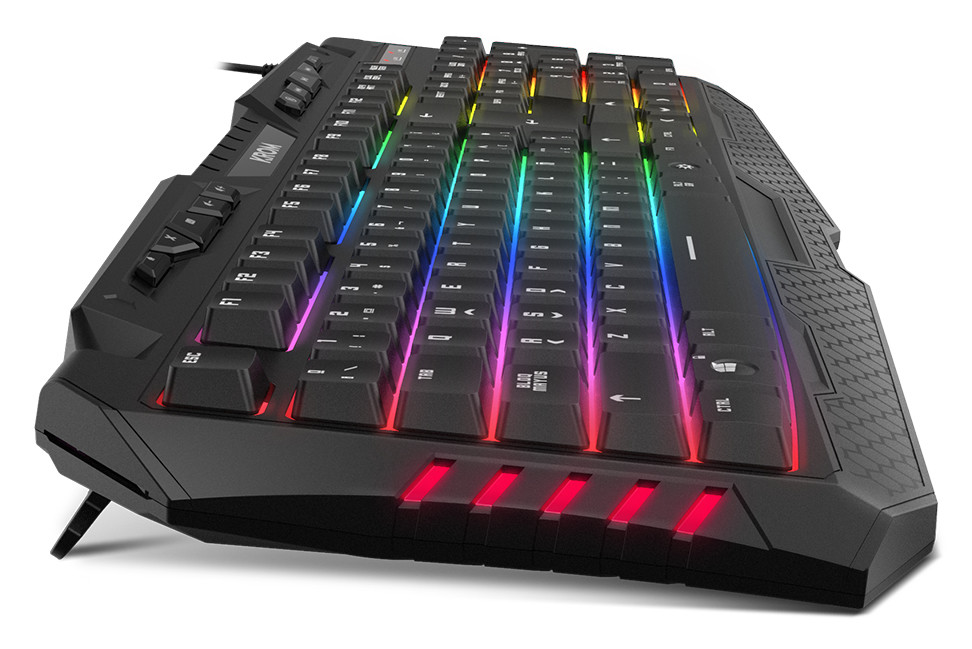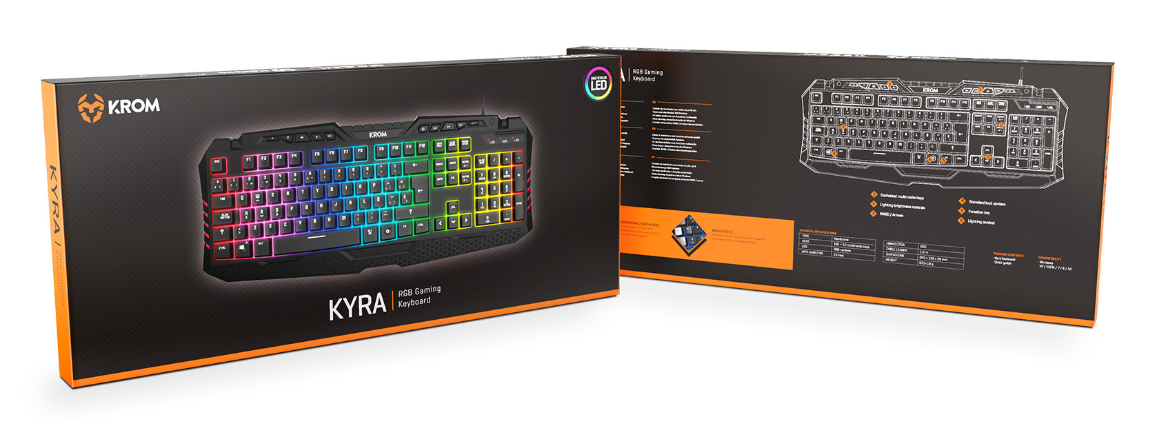 Krom Kyra. Forma do factor do teclado: Padrão. Estilo de teclado: Em frente/linha recta. Interface de dispositivo: USB, Interruptor do teclado: interruptor de membrana, Layout do teclado: QWERTY, Número de teclas do teclado: 105. Tipo de retroiluminação: LED RGB. Comprimento do cabo: 1,8 m. Cor: Preto